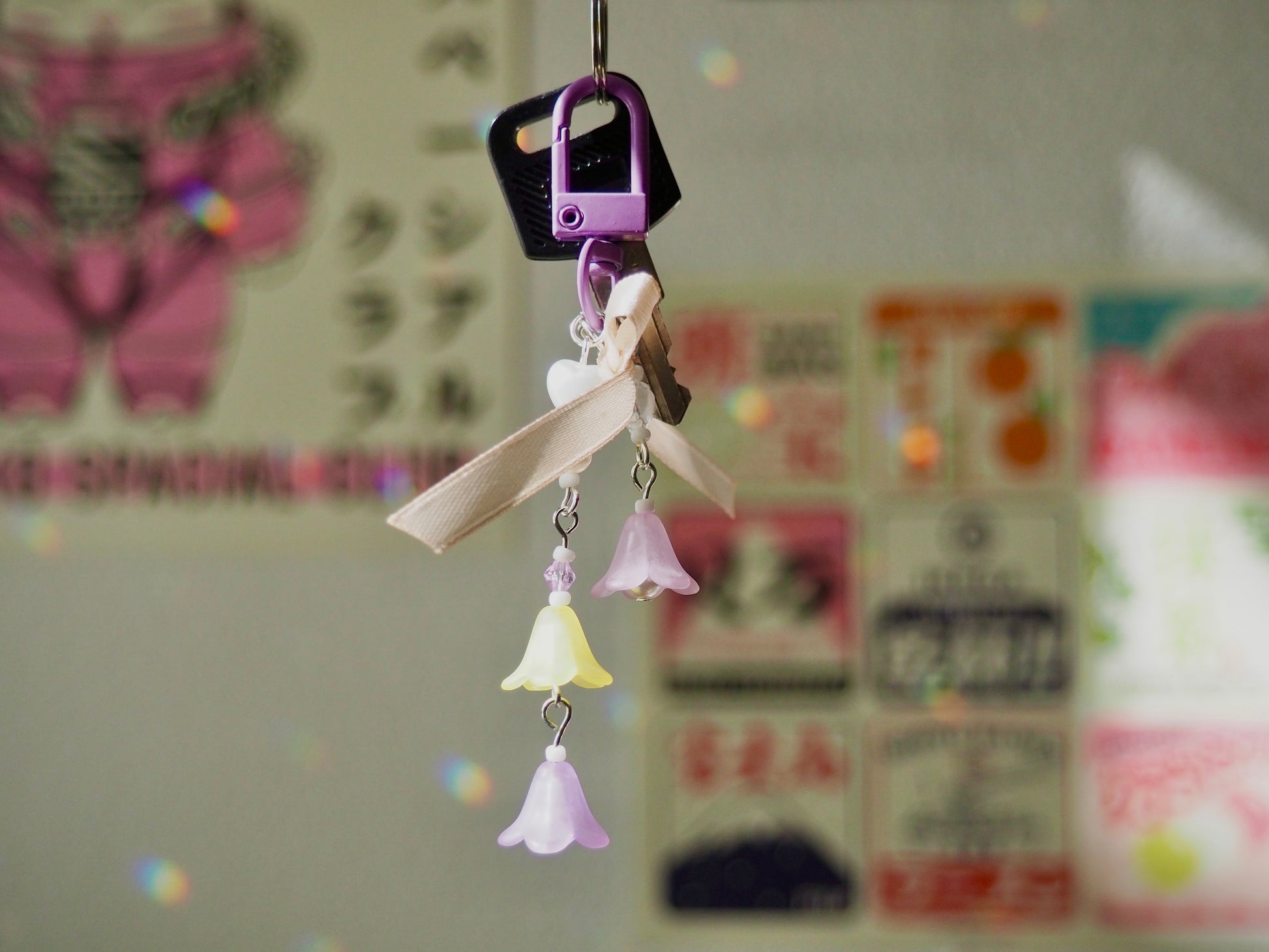 Porte-clé fleurs bicolores